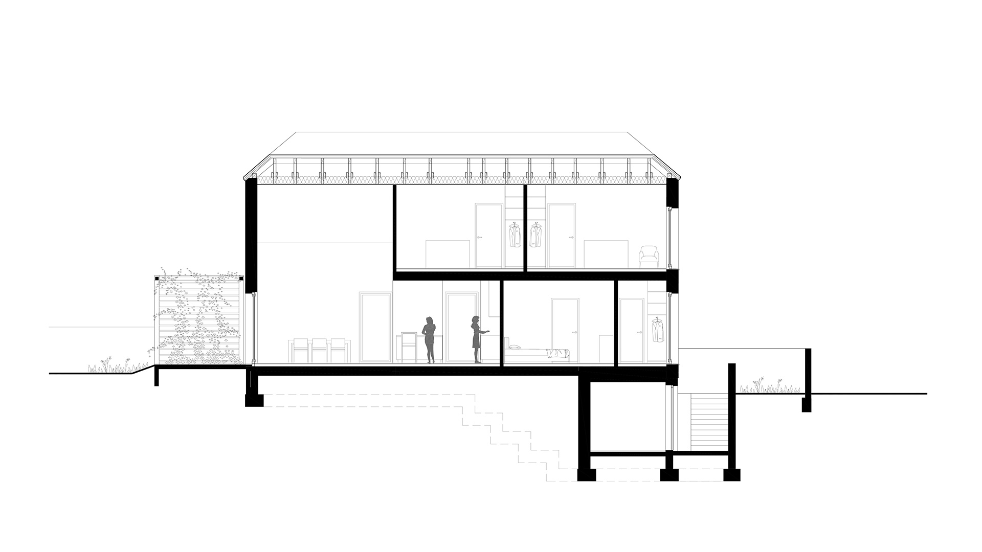 Architektura domu nawiązuje do okolicznej zabudowy historycznej. Forma budynku zamyka się w jednej bryle o kształcie archetypowego domu mieszkalnego z charakterystycznym także dla rejonów nadmorskich dachem naczółkowym.