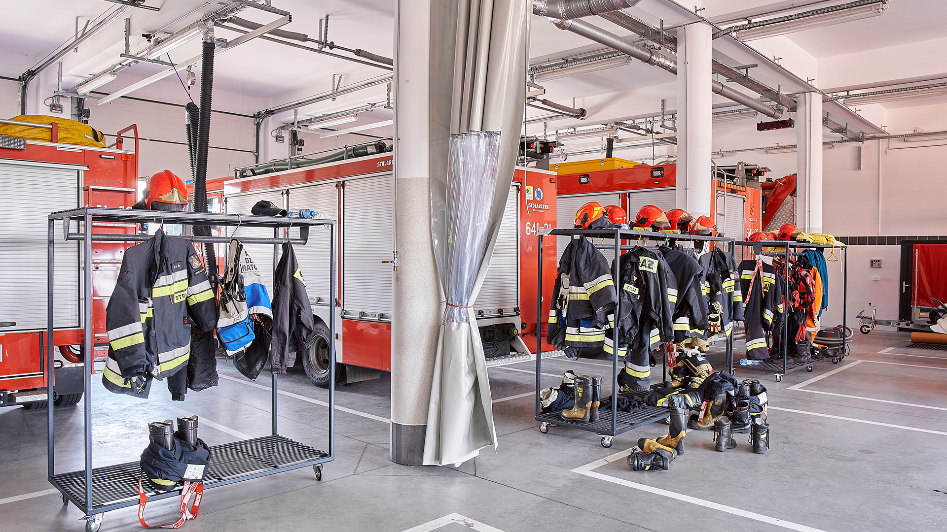Rozbudowa objęła garaże ze stanowiskami postojowymi dla pojazdów bojowych i innych sprzętów pożarniczych, węzeł higieniczno-sanitarny, sypialnie dla strażaków, pokój wypoczynkowy, salę konferencyjną, pokoje biurowe, stanowiska kierowania, pomieszczenia techniczne i pomocnicze oraz ześlizg. Pozostałą część budynku poddano pełnej modernizacji.